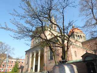 Die Stadtpfarrkirche Sankt Ursula – im Volksmund auch „Dom von Schwabing“ genannt – steht am Kaiserplatz im Münchner Norden und fällt vor allem durch ihre eindrucksvolle Kuppel auf. In der zweiten Hälfte des 19. Jahrhunderts brauchte das rasant wachsende Schwabing eine größere Kirche. Deshalb ließ Pfarrer Dr. Peter Erlacher 1894–1897 die neue Ursula-Kirche am Kaiserplatz errichten; die alte Ursula-Kirche wurde vorübergehend wieder Filialkirche. Eine Gedenktafel in der Kirche erinnert an Monsignore Peter Erlacher. Die Grundsteinlegung der Kirche erfolgte am 23.September 1894. Am 10. Oktober 1897 war der Kirchenbau einschließlich des Kirchenturms vollendet. Die kirchlichen Einrichtungsgegenstände, wie der Hauptaltar und der Josephsaltar, das Chorgestühl und die Kanzlei, waren alle von Gemeindemitgliedern gestiftet worden. Erbaut wurde die Kirche von August Thiersch. August Thiersch (1843 – 1916) hatte - wie auch sein Bruder Friedrich von Thiersch - eine Professur für Baukunst an der Königlich Bayerischen Polytechnischen Schule zu München inne. Er gehörte auch zu den Gründungsmitgliedern des 1902 gegründeten Verein für Volkskunst und Volkskunde in Bayern. Im Jahr 1898 wurde der Marienaltar aufgestellt und im Jahr 1911 erfolgte die Ausmalung von Querschiff, Apsis und Chor. Im Zweiten Weltkrieg blieb die Kirche von großen Schäden verschont; allerdings wurden die farbigen Fenster weitgehend zerstört. In den Jahren 1956 und nochmals 1977–1980 erfolgte eine Sanierung der Kirche. Die Kirche ist eine dreischiffige Basilika mit Querhaus, Vierung und Staffelchor. Das Mittelschiff wird von einer flachen, reich verzierten und vergoldeten Holzkassettendecke überspannt. Der Altar wird von zwei Heiligenfiguren gerahmt, dem hl.Nikolaus, Patron der alten Nikolaikirche, und der hl.Ursula, der Kirchenpatronin. Die St.Ursula Kirche ist die einzige Kirche im Stil der Neorenaissance in München. Die heilige Ursula war eine britannische Königstochter, die ihr Leben Christus geweiht und Jungfräulichkeit gelobt hatte. Der Legende nach, wies ein Engel sie an, nach Rom zu pilgern und prophezeit ihr, dass sie ein Martyrium erleiden wird. Ursula und ihr Gefolge reisten über den Rhein bis nach Basel und legten dann den restlichen Weg nach Rom zu Fuß zurück. Auf der Heimreise landeten sie wieder in Köln. Die Stadt litt seit längerer Zeit unter der Belagerung der Hunnen. Die wilden Horden ermordeten Ursulas Begleiterinnen auf brutale Weise. Als sich Ursula dem Hunnenfürsten verweigerte, wurde auch sie getötet. Darauf erschien eine Schar von elftausend Engeln, die die Hunnen in die Flucht schlug. Zum Dank für die Befreiung errichten die Bürger Kölns der heiligen Ursula eine Kirche und machen sie zu ihrer Schutzpatronin. In der Tradition der Fastentücher ist auch ein schmales Bild vor dem Altar von St. Ursula sehr berühmt. Die Grablegung Jesu des spanischen Künstlers Pepe Vives verbindet auf unerwartete Weise Leben und Endlich-Sein. Eine Tafel vor dem Altar erinnert an den Künstler, der am 16.02.2020 verstarb. Die Grundlage seines Bildes ist ein Foto, das er von seinem Modell gemacht hat, statt mit dem Pinsel aufzutragen, druckte er auf hauchdünnen Pergamentpapier kleine Ausschnitte des Fotos und fixierte diese mit Leim auf der grundierten Holztafel. Sehr schön fand ich auch die zwei Seitenaltäre, die Bilder des Kreuzweges und die überlebensgroßen Heiligenfiguren in den Bogennischen und die Figuren in den Seitenschiffen. Die alte Ursulaglocke von 1948 im Garten des Pfarrhauses erinnert als Schaustück an die Vergangenheit der Glocke. Die Glocken von Sankt Ursula haben laut eine Berichtes im Internet eine bewegte Geschichte hinter sich. Die ersten fünf Bronze-Glocken wurden 1897 geweiht – doch schon 1917 während des Ersten Weltkriegs wurden drei davon zerschlagen, aber nicht zu Waffen umgegossen. 1922 wurden neue Bronze-Glocken gegossen – die nächste Beschlagnahme von vier Glocken zu Kriegszwecken war im Dezember 1941. Nach dem Zweiten Weltkrieg wurden am 3. April 1949 vier neue Stahl-Glocken geweiht, die nun in 61 Friedensjahren läuteten. Im Juli 2010 wurden die vier Stahlglocken ausgebaut. Die Stahlglocken waren zu schwer für den maroden Glockenstuhl der St.Ursula Kirche. Das jetzige Plenum besteht u.a. aus vier leichteren neuen Bronzeglocken von einer Gießerei aus Passau. Bei Kirchenglocken spricht man vom Plenum, wenn alle Glocken eines Geläutes gemeinsam erklingen. 2007 ernannte das Bayerische Landesamt für Denkmalpflege die Basilika St. Ursula als "Denkmal von nationaler Bedeutung". Eine sehr interessante Kirche im Stadtviertel Schwabing.
