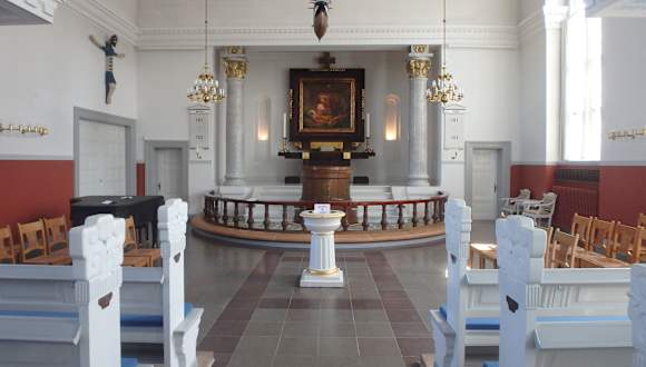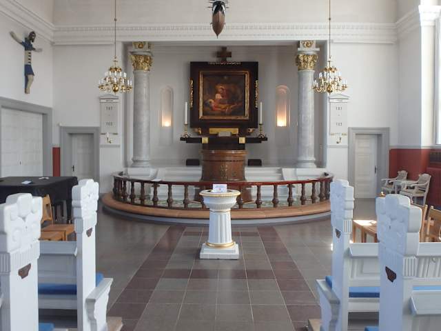 Bei einem Bummel durch Skagen trifft man fast automatisch auf diesen Sakralbau und sollte nicht versäumen, auch sein Inneres anzuschauen. Es ist -wie bei den meisten Kirchen in dieser Region- bescheiden, aber trotzdem ansprechend. Auffallend sind die aus Symmetriegründen zentral vor dem Altar stehende Kanzel und die unter der Decke baumelnden Segelschiffmodelle.