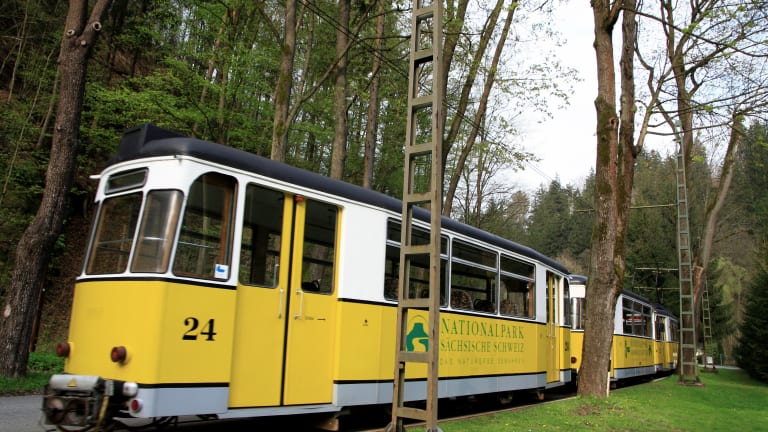 Die Fahrt ist ein Erlebnis. Laute ruckelnde Triebwagen und an Ausweichstellen Austausch von Stäben als Fahrbefehl. Schöne Landschaft Für Fotografen empfehle ich den Flößerstieg entlang der Kirnitzsch . Feste Schuhe anziehen!