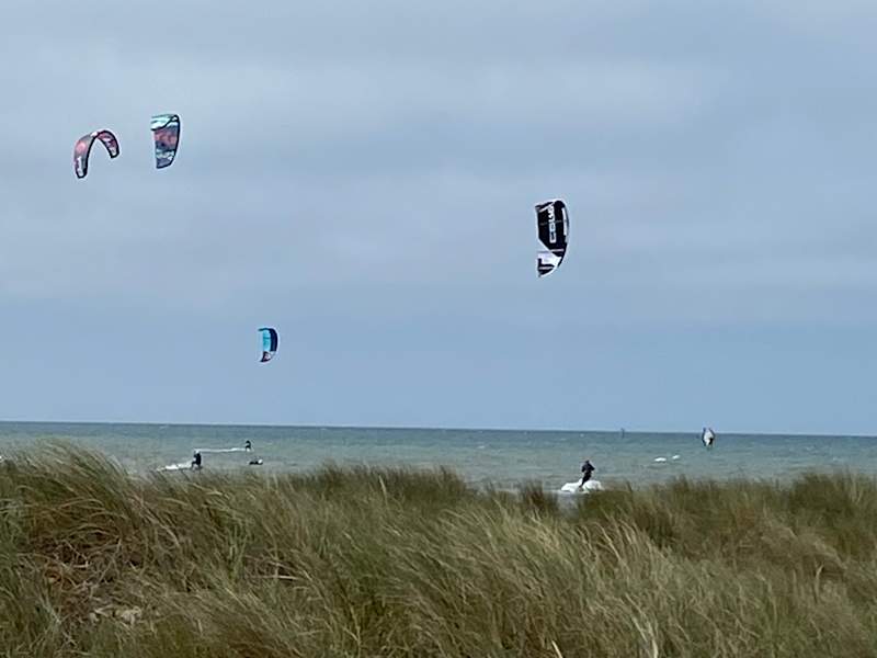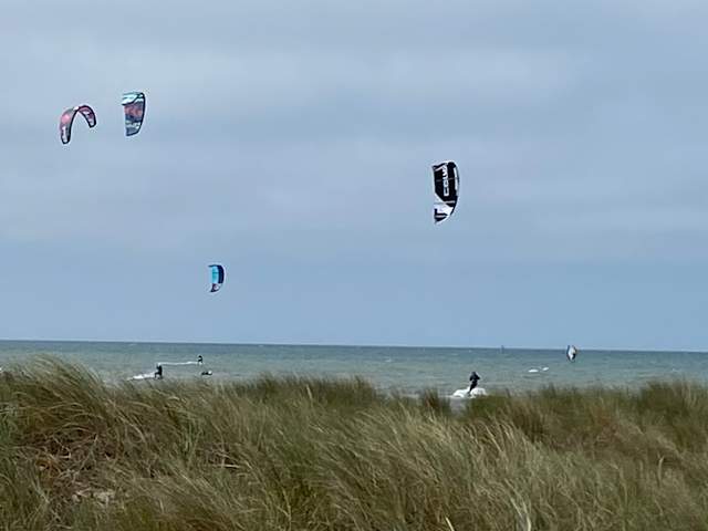 Fehmarn ist mittlerweile zum Eldorado der Kitesurfer geworden. Kaum ein anderer Sport an der Küste bietet so viele und sichere Reviere. Gerade zu ideal für Einsteiger und Fortgeschrittene ist das Stehrevier um Orth. Einsteiger kurze gibt es in der Kitesurfschule „Windgeister“ Wir haben allerdings nur zugeschaut. Es ist toll zuzusehen wie der Kiter auf seinem kleinen Brett mit dem bis zu 20qm großen Lenkdrachen (Kite) mit hoher Geschwindigkeit durchs Wasser ziehen lässt. Durch die gewaltige Kraft der Drachen sind bis zu 12m hohe und über 50 m weite Sprünge möglich. Da der Sport sehr wetterabhängig ist, sollte der eine oder andere Tag zum lernen eingeplant werden. Die Schule bietet Einsteigerkurse über 2 Tage an. Lt. Infoblatt 195 €