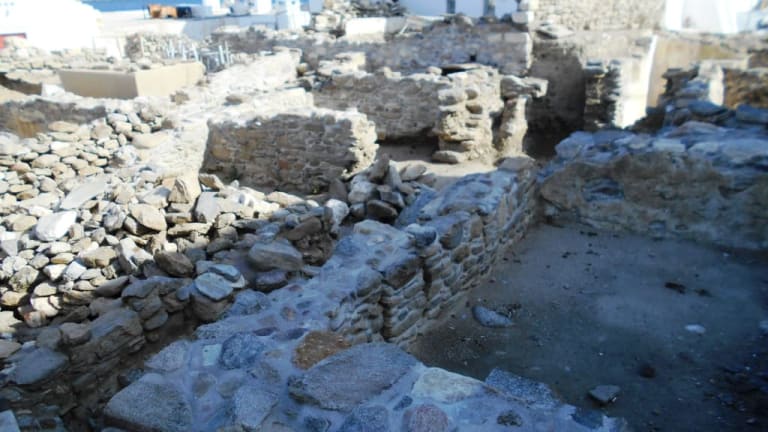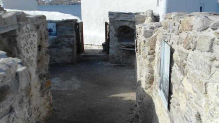 Ausgrabungen in „Klein Venedig“ haben Teile einer befestigten Wohnanlage aus dem 13. Jahrhundert freigelegt, die auf den venezianischen Edelmann Andrea Ghisi zurückgeht, der 1207 die Inseln Tinos and Mykonos eroberte und sich hier auf Mykonos niederließ. Die ausgegrabenen Gebäude- und Säulenreste waren vermutlich Teil einer mittelalterlichen Festung, die mit dem Seetor (Paraporti) verbunden war. Auf dem Gelände steht auch die heute noch erhaltene Kirche Panagia Paraportiani.