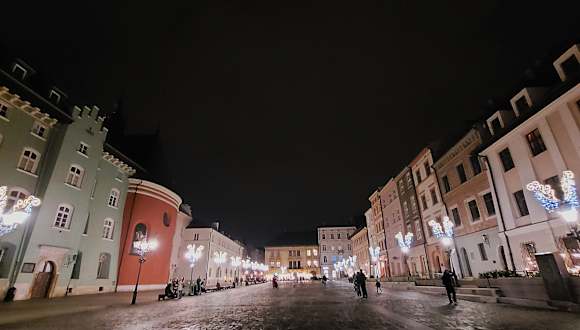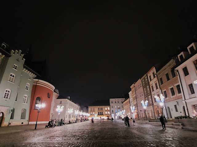 Der Kleine Markt (Maly Rynek) war seit dem Mittelalter eine Erweiterung des Hauptmarktes. Hier wurden früher mit verschiedenen Waren gehandelt Fleisch, Fisch, Obst und Gemüse uvm. Dieser Platz ist mit wunderschönen Gebäuden eingefaßt und was mich sehr gewundert hatte, daß keine Weihnachtsstände hier zu finden waren - weihnachtliche Beleuchtung gabe es. Da unser Bus in der Nähe dieses Platzes stand konnten wir ihn am Tage und auch beleuchtet bewundern...