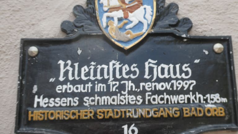 In der Kirchgasse 23, unterhalb der katholischen Kirche St. Martin, befindet sich das sogenannte „Kleinstes Haus von Bad Orb“. Teilweise wird es auch als das „Schmalste Fachwerkhaus Hessens“ bezeichnet. An der schmalsten Stelle misst dieses angeblich nur 1,58 Meter. Dieses schmale Fachwerkhaus, genauer gesagt Hausvorbau, wurde 1634 erbaut und gehört zu den Hauptsehenswürdigkeiten von Bad Orb. Es ist ein Touristenmagnet und zudem ein sehr beliebtes Fotomotiv.
