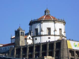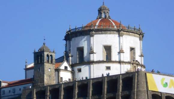 Die Domherren des Santo Agostinho siedelten sich im 16. Jahrhundert am Ufer des Douro an und begannen 1538 mit dem Bau des Klosters auf dem Hügel über dem Fluss. Die runde Klosterkirche ist eine Kopie der Kirche Santa Maria Redonda in Rom. Auch der Kreuzgang des Klosters hat einen runden Grundriss. Während der Belagerung Portos im Jahr 1832 wurde der militärische Wert dieser Anlage erkannt, und sie wurde in eine improvisierte Festung verwandelt. Wegen der geomilitärischen Relevanz und der privilegierten Lage am Fluss Douro erfolgte 1835 die endgültige Säkularisierung des Klosters und die militärische Nutzung. Nach dem 2. Weltkrieg wurde ein Teil der Klosteranlage zu einem Museum umfunktioniert, die Kirche wurde restauriert und wieder für Gottesdienste genutzt. Vor der Kirche befindet sich eine Aussichtsplattform, von hier hat meinen einen sehr schönen Blick auf Porto auf der anderen Seite des Flusses.
