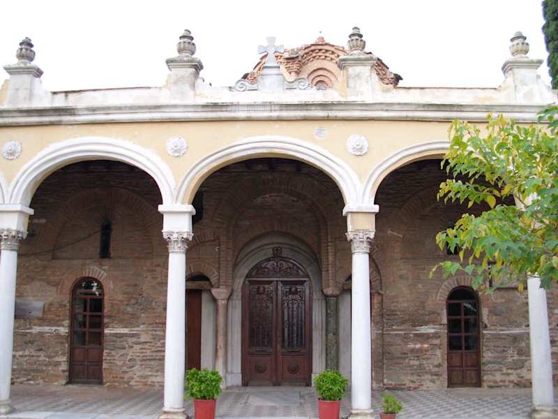 Das Kloster Vlatades (Moni Vlatadon), auch bekannt unter der Bezeichnung "Tsaous Monastir", liegt auf einem etwa 130 Meter hohen steilen Felsen in der historischen Oberstadt von Thessaloniki. Das Konvent soll an der Stelle errichtet worden sein, wo der Apostel Paulus bei seinem Aufenthalt in der Stadt seine Lehre verbreitete. Es wurde in der Mitte des 14. Jahrhunderts von den Brüdern Markos und Dorotheos Vlatis gegründet, untersteht direkt dem Ökumenischen Patriarchen von Konstantinopel und ist das einzige, dass seit der byzantinischen Zeit bis heute aktiv betrieben wird. Von 1387 bis 1430 -nach der ersten Eroberung von Thessaloniki durch die Türken- dienten die Gebäude als Moschee. Heute sind nur noch Bruchteile des ursprünglichen Klosterkomplexes vorhanden, da u.a. die osmanische Besatzung und mehrere schwere Erdbeben ihre Spuren hinterlassen haben. In der Klosterkirche findet man byzantinische Mosaike und Wandmalereien aus dem 11. bis 14. Jahrhundert, in der Sakristei Reliquien von Heiligen und in der Bibliothek alte Handschriften, Dokumente und Bücher, Ikonen und vieles mehr. Von der Klosteranlage hat man einen spektakulären Blick auf die Thermaikos Bucht und die Stadt.