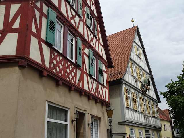 Die Fachwerkhäuser an dem kleinen Platz sind sehr schön und gepflegt. Hier wohnte wohl früher ein enger Freund und Arzt des Pfarrers Sebastian Kneipp. Der "Wasserdoktor" weilte hier einige Jahre.