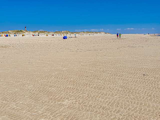 Kniepsand ! http://www.youtube.com/schleswigholsteintv#p/u/26/zyAodiS8X0I Ein herausragendes Merkmal ist der Kniepsand, wie der unvergleichliche Strand auch genannt wird. Allein die Maße sind rekordverdächtig: mit einer Länge von fast 14 km und durchschnittlich 1300 Meter Breite, da muss man schon ganz schön lange laufen, wenn man mal eben baden gehen möchte. An einem derart breiten Strand findet aber auch ein jeder sein stilles Eckchen, sogar “Künstler”, das sind Urlauber und Gäste die sich hier Strandburgen aus dem Sand oder sogar Kunstwerke aus angeschwemmten Strandgut bauen. Die Kurverwaltung lässt sie gewähren, genau wissend, dass der nächste Sturm alles wieder zurück ins Meer fegt. Ein Sandstrand wie es ihn in dieser Ausdehnung -mit dem Kniepsand-, gibt es auf keiner anderen eurapäischen Insel.