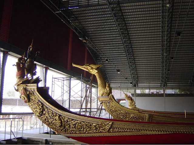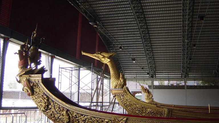 Der „Fluss der Könige“ Chao Phraya war schon immer die Lebensader von Bangkok, auch wenn die Bedeutung des Flusses heute hinter Straßen und Schienen zurücksteht. Früher waren nicht nur Händler und Bewohner auf dem Wasser unterwegs, auch die Könige fuhren einst mit ihren reich geschmückten Barken über die Wasserstraßen. Heutzutage werden die Barken nur noch zu besonderen zeremoniellen Anlässen genutzt- In dem Museum am Bangkok Noi kann man einige dieser imposanten und prachtvollen Barkassen der königlichen Familie besichtigen.