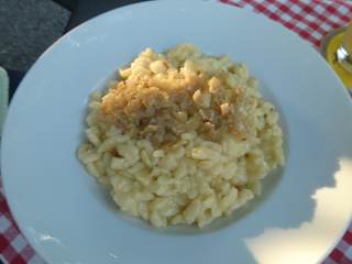 Wir waren im Biergarten vom Königlichen Jagdhaus in Oberstdorf zum Abendessen. Der Biergarten war sehr gut besucht, aber wir fanden noch einen schönen Platz an einem der kleinen Tische. Uns hat es hier gut gefallen, wir wurden sehr freundlich bedient, die Preise waren o.k. - und das wichtigste: es hat uns hier recht gut geschmeckt (ich hatte eine Portion „Käs'spatzen vom heimischen Bergkäse mit geschmälzten Zwiebeln“, die reichlich sättigend war).