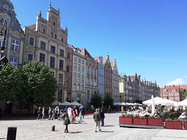 Wenn man von der Ulica Długa (Langgasse bzw. Lange Gasse) kommend vorbei am Rechtstädtischem Rathaus läuft, so kommt man zum Długi Targ (Langer Markt). Am Anfang vom Langen Markt / Ecke Ul. Ławnicza beginnt auf der rechten Straßenseite eine schöne Häuserreihe. In den ersten Häusern, gegenüber vom Neptunbrunnen, waren die Unterkünfte der Polnischen Könige, wenn sich diese in Danzig aufhielten (weswegen sie auch als Königshäuser bezeichnet werden). Diese Könighäuser sind, wie fast der ganze Lange Markt, wieder aufgebaut Gebäude, da hier im Zweitem Weltkrieg fast alles zerstört wurde (90 % des Stadtzentrums waren in Schutt und Asche). Obwohl diese Häuser also Rekonstruktionen sind, könnte man sie wirklich alle für alte Bauwerke halten.