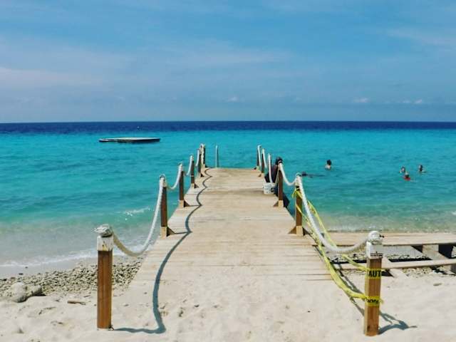 Die „Kokomo-Beach“ liegt nördlich des Örtchens Sint Michel und gehört zu den Top-Stränden der Insel, obwohl die Bucht nicht übermäßig groß wirkt. Der Strand ist feinsandig und sehr gepflegt, Kokospalmen und Sonnensegel spenden Schatten und das Meer präsentiert sich türkisblau und glasklar. Neben einer Tauchschule findet sich ein großes Restaurant, in dem man nicht nur sehr ordentlich essen, sondern auch im geschmackvollen Lounge-Bereich Cocktails mit Blick auf den Sonnenuntergang genießen kann. Duschen, Toiletten und freies WLAN gehören zur Infrastruktur der Kokomo-Beach – der Zugang ist kostenlos, lediglich für die Liegen wird eine Tagesgebühr von etwa 3,50 € berechnet. Jeden Monat steigt hier übrigens eine kultige Veranstaltung, die „Full-Moon-Party“, die mit über 3000 Besuchern zu den größten Open-Air-Festivals der Karibik gehört. Besonders am Wochenende ist die Kokomo-Beach gut besucht – wer Ruhe liebt, sollte den Strandtag eher unter der Woche planen.