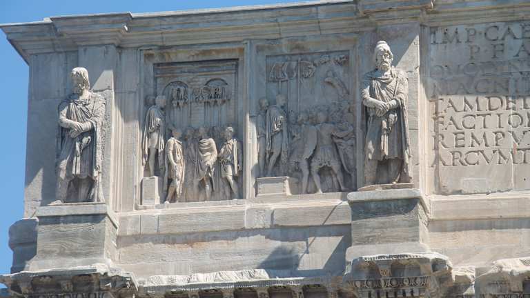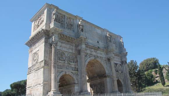Sehr beeindruckendes Bauwerk. Der Römische Senat verlieh Konstantin den Bogen aufgrund seines Sieges gegen die Zahlenmäßig Überlegen Armee des Maxentius im Jahre 312 n.Chr. Der Bogen zeigt sehr viele Reliefs die von anderen Bauwerken stammen, zb.vom Trajansforum oder Reliefs die aus der Zeit von Kaiser Hadrian stammen. Auch der Standort zwischen Circus Maximus und dem Colosseum ist schon sehr Exponiert. Der Bogen ist auf jeden Fall ein must see !