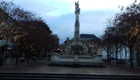 Der Kornmarkt ist ein großzügig angelegter Platz, dessen Fläche zur Zeit meines Aufenthaltes zu einem großen Teil von dem dort aufgebauten „Winterland Trier“ eingenommen wurde. Es machte Spaß, den Kindern beim Schlittschuhlaufen zuzuschauen, allerdings konnte man sich von dem Platz an sich dadurch keinen hundertprozentigen Eindruck machen. Dennoch – allein schon der prächtige Georgsbrunnen aus dem 18. Jh. (1750), das Casino von 1825 und das wirklich sehr schöne ehemalige Postgebäude machen aus dem Platz einen Hingucker. Im Einzelnen: Das Postgebäude liegt an der Stirnseite des Platzes in der Fleischstraße. Zuvor befand sich dort das Palais Kronenburg (von 1759). Dieses wurde 1880 abgerissen und auf dem Gelände entstand das Postgebäude mit Fassadenelementen des früheren Palais. Genau gegenüber steht heute der Georgsbrunnen – heute, da er früher in der Mitte des Platzes zu finden war. Als er umgesetzt wurde, hat man wohl neben einem Grundstein zwei Flaschen Ebling gefunden, Jahrgang 1750. Zum Georgsbrunnen: Der Obelisk soll 11m hoch sein, obenauf St. Georg, der mit dem Drachen kämpft. Unten sind die Allegorien der vier Jahreszeiten zu sehen und zu ihren Füßen kleine Drachen als Wasserspeier. Der Brunnen wurde zu Ehren des Kurfürsten von Schönborn errichtet. Bleibt das dritte schöne Gebäude des Platzes – das Casino. Dort soll es Ballsäle u. ä. gegeben haben und war wohl für die Feierlichkeiten der gut gestellten Bürger gedacht. Der französischen Armee diente es im 20. Jahrhundert zweimal als Offizierscasino. Bis zum Zweiten Weltkrieg gab es noch ein drittes schönes Gebäude am Kornmarkt – das alte Rat- und Kaufhaus gegenüber dem Casino. Der ursprüngliche Bau stammte aus dem 15. Jahrhundert, später wurde er vergrößert. Der Kornmarkt war übrigens ursprünglich ein Lagerplatz. Erst im 18. Jh. wurde beschlossen, hier einen „Neuen Markt“ zu gestalten. Kurfürst von Walderdorff ließ dafür eine Verbindung zwischen der Brot- und der Fleischstraße herstellen. Und stimmt, das ist praktisch und erspart den Weg über den Hauptmarkt. Natürlich ist der Kornmarkt längst nicht so attraktiv wie der Hauptmarkt mit seinen vielen schönen Gebäuden. Ich habe aber sehr gern am ruhigeren Kornmarkt Pause gemacht, bevor ich mich zum krönenden Abschluss des „Kultur-Tages“ in die Shoppingzone der „Galerie“ begab :-) (Quellen: Infos vor Ort / Baedeker „Trier“ / 2008 )
