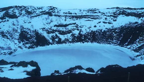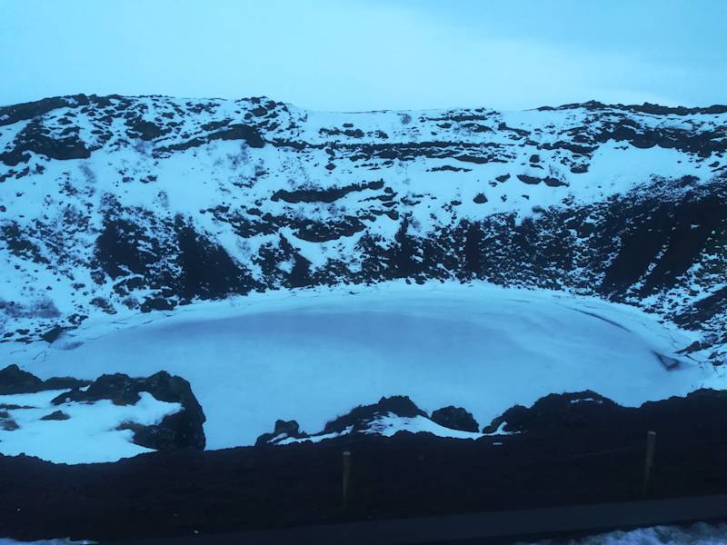 Der Kerid Krater liegt auf dem Rückweg des Goldenen Kreises. Für ein kleines Eintrittsgeld kann man um den kompletten Krater herum laufen, besonders bei gutem Wetter ein toller Anblick