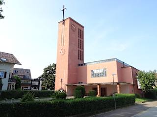 Die Kirche wurde von 1928 bis 1930 mit der damals neuartigen Stahlkonstruktion (Skelettbau mit Stahlbeton) errichtet. Das Gebäude fällt allein schon wegen der roten Farbe der Fassade auf und zählt heute als Baudenkmal. Bis 1980 wurde die Kirche wohl auch als "Neue Kirche" bezeichnet.