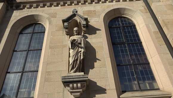 Das Kriegerdenkmal von Häslach befindet sich an der Außenmauer der Häslacher Kirche. Es ist eine zweiteilige Gedenktafel. Darauf die Namen der Toten beider Weltkriege. Über der Tafel ist eine Christusstatue zu sehen. Darunter eine Inschrift: „Zum Andenken an die Gefallenen und Vermissten der beiden Weltkriege.“ Adresse: Dorfstraße 1, 72141 Walddorfhäslach Webseite: http:// www. kirche-wh. de/ Geodaten: H5WV+PF Walddorfhäslach