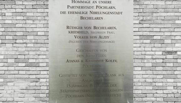 Ein sehr schönes Kunstwerk befindet sich auf der Donauinsel. Drei bizarre Gestalten auf Betonsockeln sind hier zu sehen. Aus Pöchlarn, der Partnerstadt Riedlingens kommt einer der Künstler. Das Werk sollte dort aufgestellt werden. Rüdiger von Bechelaren, Kriemhild und Siegfrieds Frau - drei Figuren aus der Nibelungensaga. Das Kunstwerk ist aus geschweißtem Edelstahl und ein Fotomotiv. Adresse: Inselbrücke, 88499 Riedlingen Geodaten 5F3H+34 Riedlingen
