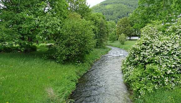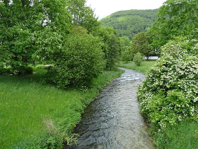 Sehr schöner gepflegter Kurpark mit etlichen Statuen. Begleitet wird man beim Spaziergang ständig vom Rauschen des Flüsschens Erms.