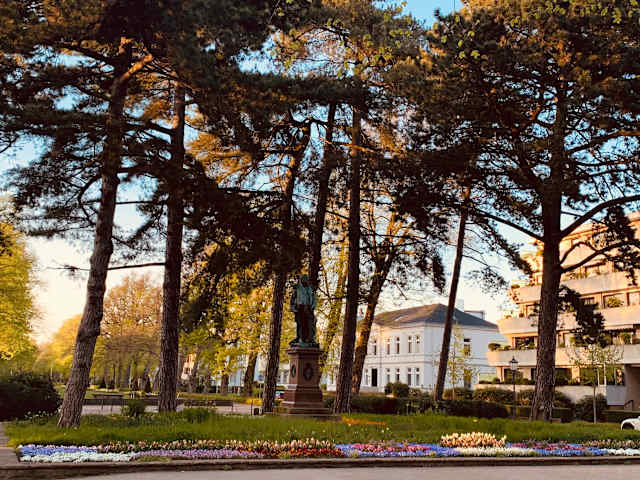 Der Kurpark von Wilhelmshaven liegt zentral in der Innenstadt und bildet mit seiner Fläche von 17 Hektar eine grüne Oase inmitten der sonst ziemlich engen Bebauung. Gegründet wurde der Park bereits um 1870, wobei die Marine ebenfalls großes Interesse am Kurpark zeigte, im östlichen Teil sogar Anfang des letzten Jahrhunderts ein Offizierskasino errichtete und dieses Areal dann kurzerhand für die Öffentlichkeit sperrte. In der Nähe eines Werftgeländes gelegen, führte der zweite Weltkrieg zu schweren Schäden an den Gebäuden und Anpflanzungen – Parkhaus, Schweizerhäuschen und ein Musikpavillon wurden vollständig durch Bombentreffer zerstört. Heute kann man den Kurpark zwischen den Fontänen der beiden Teiche auf gepflegten und verschlungenen Wegen durchqueren und kommt dabei an der neuen Musikmuschel, einem Kinderspielplatz und der Rollschuhbahn vorbei. Rührend sind die beiden Stein-Skulpturen „Hein und Grete“ am nordöstlichen Parkteich und der beeindruckende alte Baumbestand des Kurparks erinnert mit seinem intakten Unterholz in weiten Teilen an einen richtigen Wald. Wer sich Zeit nimmt, kann mit etwas Glück auch Tiere entdecken, die man sonst in der Stadt eher selten antrifft. Der Rundgang durch den herbstlichen Kurpark hat mich angenehm überrascht: Mit seinen Wasserläufen, Sträuchern und Freiflächen überzeugt der kleine Stadtgarten mit einer unerwarteten Naturnähe und bietet sich bestens für eine „grüne Auszeit“ an.