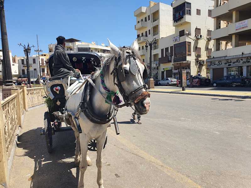 In Luxor gibt es zahlreiche Pferdekutschen. Eine preiswerte Fortbwegungsmöglichkeit.