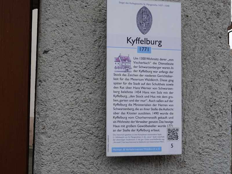 In der Dettenbachstraße befand sich früher um 1300 die Kyffelburg. Ende des 15. Jahrhunderts ging die Kyffelburg in das Eigentum des Chorherrenstifts über und war lange Wohnsitz des Verwalters. Die Kyffelburg existiert heute nicht mehr - es erinnert noch eine Infotafel an das ehemalige Gebäude. Das heutige Gebäude stammt aus dem 18. Jahrhundert. Geschichtlich interessant, leider aber eben nur noch eine Erinnerung.