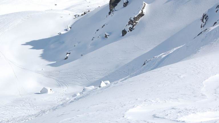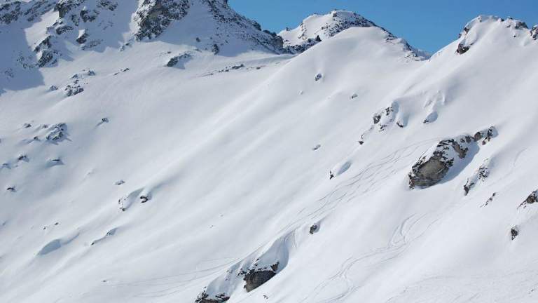Im Skigebiet um den Greppon Blanc, auf dem Weg nach Thyon 2000 und Les Masses, befindet sich der Einstieg zur Tour „L'Eteygeon“. Dies ist eine ca 13km lange, nicht kontrollierte und unpräparierte Abfahrt, die eine Vielzahl herrlicher, kleinerer wie größerer Offpiste-Varianten eröffnet. Am Ausstieg des oberen Greppon Blanc Schlepplifts (auf 2630m) wendet man sich nach rechts, packt die Ski auf die Schulter (oder schnallt sie auf den Rucksack) und marschiert ca. 30 steile Höhenmeter nach oben auf die Passhöhe. Dort ist der Einstieg in das Greppon Blanc-Back-Country, das L’Eteygeon. Der Großteil der Skifahrer nimmt die eingefahrene Hauptroute, die direkt unterhalb des Passes nach unten führt, bei guten Konditionen und guter Ortskenntnis kann man sich unterhalb des Gipfels nach rechts halten und die Varianten nehmen. Wer einen Gipfel mag, kann vom Pass auch noch weitere 15 Minuten aufsteigen auf den Greppon Blanc (2700m) allerdings steht oben eine wenig romantische Fernmeldeanntenne, und man hat wegen der Felsen sehr wenig Platz, die Ski wieder unter die Füße zu bekommen. Die Südseitige gelegenen Hänge unterhalb des Greppon sind aber ein Traum. Steile Abschnitte, lange Wellen, flachere Stücke, einfach herrlich. Eigentlich muss man sich nur grob nach rechts orientieren, und kommt früher oder später auf die „Hauptroute“ (meist schon vom Gros der Skifahrer als leichte Buckelpiste ausgeschoben) die über Almen und durch Wald hinunter ins Val d'Hérémence führt. Da die Strasse im Tal deutlich unter 1300m liegt ist eine gute Schneelage Voraussetzung, um ohne längeren Fußmarsch zur Bushaltestelle zu kommen. In der Hauptsaison fahren die Busse alle Stunde wieder in Richtung Les Masses, von wo aus man ohne Probleme wieder per Sessellift in die 4Vallées Richtung Thyon und Siviez einsteigen kann. Die Abfahrt ist sehr lange, stellenweise steil und ausgesetzt, je nach „Variante“ und Aufstiegspensum auch extrem kraftraubend, und führt durch ein sehr abgelegenes Gebiet. Nichts für Anfänger und Skifahrer mit „Gefälle-Angst“) Nie alleine fahren, immer Handy und die Standard Offpiste-Notfall Ausrüstung mitführen. Wenn man Nachmittags fährt, mindestens eine Stunde und ein paar Verschnaufpausen einkalkulieren, damit man den letzten Bus noch bekommt. Eventuell im Office du Tourisme anrufen und die genauen Abfahrtzeiten nachfragen. Unten an der Bushaltestelle gibt es einen kleinen Kiosk, wo man sich nach überstandenen Strapazen in der Sonne sitzend Crepes und einen Milchkaffee gönnen kann. Sehr schöne Tour mit herrlichen Varianten und herrlichen Ausblicken.