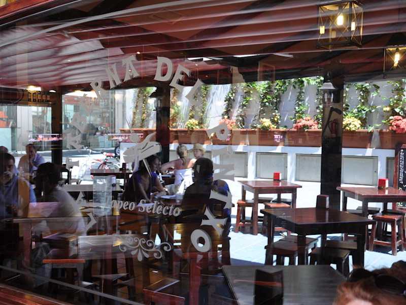 In der Taberna del Pintxo werden qualitativ hochwertige Tapas/Pintxos angeboten. Jedoch können diese nicht klassisch nach Speisekarte bestellt werden. Hier geht der Kellner von Tisch zu Tisch und bietet den Gästen die frisch zubereiteten kleinen Köstlichkeiten an. Entweder sagt einem des Angebotene zu oder man wartet auf die nächste Runde. Abgerechnet wird danach anhand der auf dem Teller befindlichen Zahnstocher oder Plastikspießchen, die je nach Größe bzw. Farbe den Preis festlegen. Die Taberna del Pintxo liegt etwas versteckt gegenüber des El Corte Inglés direkt nebem dem Har Rock Café.