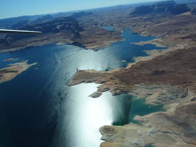 Der Lake Powell ist ein Stausee in den USA und liegt rund 350 km nordöstlich von Las Vegas im Grenzgebiet von Utah und Arizona. Er entstand Mitte der 1960er Jahre durch Aufstauung des Colorado an der Ostseite des Grand Canyon und entwickelte sich auf Grund vielfältiger Freizeitangebote um den See und zahlreicher Sehenswürdigkeiten im Umland zu einem beliebten Urlaubsziel. Niederschlagsarme Jahre und eine verstärkte Wasserentnahme lassen den Wasserpegel des Sees seit Jahren stetig sinken.