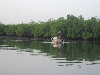 ca 3 km von der Brikama Highway und derf ortschafgts Lamin entfernt. 3 km sind definitiv zu weit um zur lamin Lodge zu wandern. Es fährt auch kein Minibus des public tranport Systems (weiße Minibusse) dort hin. Es empfiehlt sich ab Lamin ein gelbes Taxi zu nehmen. Ich habe dafür 200 dalasi (unverhältnismäßig teuer) gezahlt Zurück bin ich wieder in einem gelben Taxi (bush taxi) in Fahrgemeinschaft mit Einheimischen für 12 Dalasi gefahren. Mit dem Boot auf dem Gambia River selbst zu paddeln, ist super. Wegen der leichten Strömung zuerst stromauf bzw. bei Flut auch zuerst stromab, dann ist der Rückweg einfacher. 2 stunden Bootsausflug waren mir genug - eigentlich schon zu lange, wenn man bei der Hitze selbst paddelt. Die Natur mit den Mangroven ist den Besuch wert. Hippos habe ich keine gesehen.