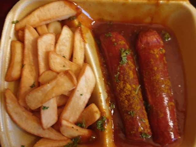 Das Landhaus "Zum Alten Fritz" findet man in 38723 Seesen, Frankfurter Str. 2. Zur Unterstützung der regionalen Restaurants während der Corona Pandemie und wegen der ansprechenden Werbung in den sozialen Netzwerken Bestellung außer Haus. Feierabendessen "To go" von Montag bis Freitag täglich in der Zeit von 17.00 bis 19.00 Uhr - beachtliches Angebot von fünf unterschiedlichen Gerichten " To go ". Sonntagsessen "To go" nach Vorbestellung, zur Auswahl werden drei unterschiedliche Gerichte angeboten. Telefonische Vorbestellung von Currywurst mit Pommes zum Preis von 7,00 Euro - nach 20 Minnuten zum Abholen bereit. Parkplätze findet man direkt vor dem Gasthaus, hübsch gestalteter Außenbereich, Außensitzplätze, überdacht. Gastraum gemütlich, sauber und sehr aufgeräumt, Tische mit Tischdecke, als Deko Kerze in geschmackvollem Leuchter. Personal super freundlich und nett, Currywurst und Pommes wurden erfreulicherweise erst bei Abholung verpackt. Speisen sehr gut verpackt, auch bei Eintreffen zu Hause noch heiß. Currywurst und Soße separat von den Pommes plaziert, appetitlich mit Petersilie garniert, Portion von guter Größe. Die Currywurst selbst gut gebräunt, mit fast glatter Oberfläche, nicht schrumpelig oder trocken. Die Currysoße - einfach lecker. Pommes Frites außen knusprig und innen fluffig - so müssen Pommes schmecken. Fazit: Auch während der Corona Pandemie große Auswahl an unterschiedlichen Speisen. Preis- Leistungsverhältnis super. Personal sehr nett und freundlich. Gastraum gemütlich und sauber. Currywurst mit Pommes - super Qualität und super Geschmack - empfehlenswert !