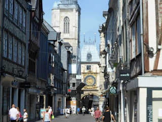 Der gotische Glockenturm (beffroi) neben dem Gebäude mit der Großen Uhr (gros-horloge) beherbergt die Glocken in der Stadt und einen der ältesten Mechanismen der Uhrmacherkunst in Europa, der seit dem 14. Jahrhundert bis 1928 in Betrieb war. Das Ensemble aus Glockenturm und Torgebäude mit der Uhr ist eine besondere Sehenswürdigkeit in Rouen.