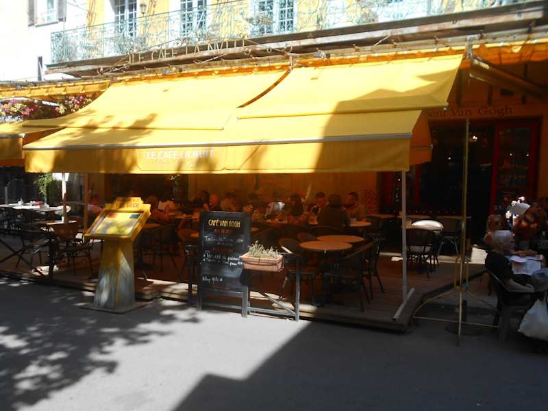 Das Café am Place du Forum ist bekannt von dem Gemälde „Caféterrasse am Abend“, das Vincent van Gogh 1888 in Arles gemalt hat. Es lockt täglich viele Besucher an und wird meist nur Café Van Gogh genannt. In den 1990er Jahren wurde das Café so umgebaut, dass es genau der Ansicht von van Goghs Bild entsprach. Van Gogh verbrachte 15 Monate in Arles und hatte hier eine intensive und leidenschaftliche Schaffensperiode, etwa 300 Gemälde und Zeichnungen entstanden in dieser Zeit. Anstatt in dem überfüllten Café auf einen freiwerdenden Tisch zu warten, setzten wir uns in das Bistrot gegenüber und hatten vor dort einen guten Blick auf das Café.