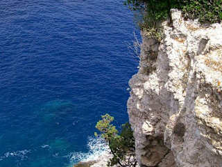 Ein geländetaugliches Fahrzeug benötigt man heute nicht mehr, wenn man die steil aus dem Meer aufragenden Kalksteinklippen an der Südspitze Lefkadas bewundern möchte. Entlang der Westküste hat man vor einiger Zeit die ehemalige Schotterpiste zum Kap Ducato- wie die Italiener es nannten- asphaltiert. Ganz im Süden der schmalen Landzunge, die wie ein Finger ins Meer ragt, bietet sich eine spektakuläre Kulisse. Hier, wo einst ein Apollon-Tempel seinen Platz hatte, thront heute auf der über 70 Meter hohen Felskante ein Leuchtturm. In der Antike wurde mancher Delinquent- mit Vogelfedern bestückt- zur Urteilsfindung in die Tiefe geworfen. Überlebte er, wurde dies als göttlicher Freispruch gewertet und er war rehabilitiert. Der Sprung vom Felsen galt außerdem als (todsicheres) Heilmittel gegen Liebeskummer. Die wohl berühmteste Selbstmörderin soll, zumindest der Sage nach, die Lyrikerin Sappho gewesen sein, die den Freitod wählte, weil ihr Auserwählter Phaon ihre Liebe nicht erwiderte. Als Phaon mit seiner Geliebten auf dem Weg nach Italien mit dem Schiff das Kap Ducato passierte, stürzte sich Sappho hier in die Tiefe. Vom Kap aus hat man einen herrlichen Ausblick auf die zerklüftete Westküste und auf die benachbarten Inseln Kefalonia und Ithaka. Die Gegend ist ausgesprochen einsam, lediglich ein paar Hirtenbehausungen und das verlassene Kloster Agios Nikolaos (nebst funktionstüchtiger Telefonzelle der OTE!) befinden sich in der Nähe. Schon die Fahrt zu diesem entlegenen Punkt ist wunderschön- vorbei an den Traumstränden Porto Katsiki und Egremni, durch Ölbaumhaine und durch die mit Zypressen, Aleppokiefern und Kräutern bewachsene Landschaft Lefkadas.