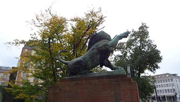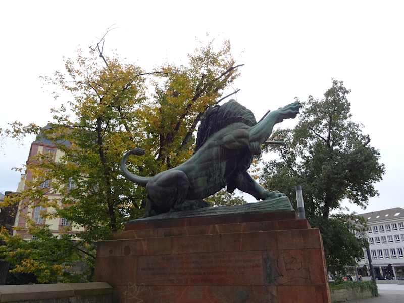 Das Denkmal aus den 1920ern erinnert an die im Ersten Weltkrieg Vermissten und Gefallenen eines Infanterieregiments. Das Denkmal stellt einen Löwen dar, welcher bereits durch eine Lanze verletzt ist und noch kämpft.