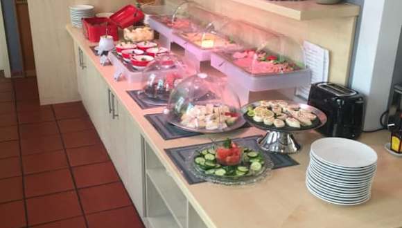Sehr geschmackvolles Frühstücksbüffet, mit großer Auswahl an Aufschnitt, Käse, frisch zubereiteten Salaten und Eierspeisen, selbstgemachter Marmeladen, Bio-/Müsliecke, Joghurts, verschiedene Brot- und Brötchensorten. Kaffee- und Tee soviel man möchte. Wasser und verschiedene Säfte, Obstsalat