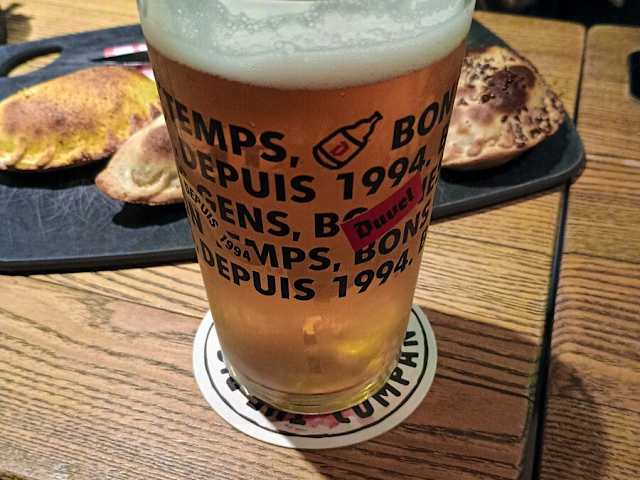 Wie in Frankreich üblich, öffnet die Kneipe (und das Restaurant/die Küche) um 17.00 Uhr, und am Wochenende wird es um 17.00 Uhr sehr voll, und es ist schwierig, einen Tisch zu bekommen.) Sie servieren Kraftbiere (leider, wie es in Frankreich ist, teuer) klein (250ml) von €3,4 groß (500,l) bis €8,3 Aber dafür kann ich das Essen sehr empfehlen, z. B. die Veggie Combo mit einer Mischung aus lokalen Produkten wie frischem Ziegenschimmelkäse und gelbem Comté aus Metz (Les Freres Marchand) und dem tragischen Hummus für 17 €. Und ein nettes Set mit 4 Empanadas für 14 €. Sehr coole Musik (TOOL, Alice in Chains, Elvis Costelo), so dass man sitzen und sitzen und sitzen kann
