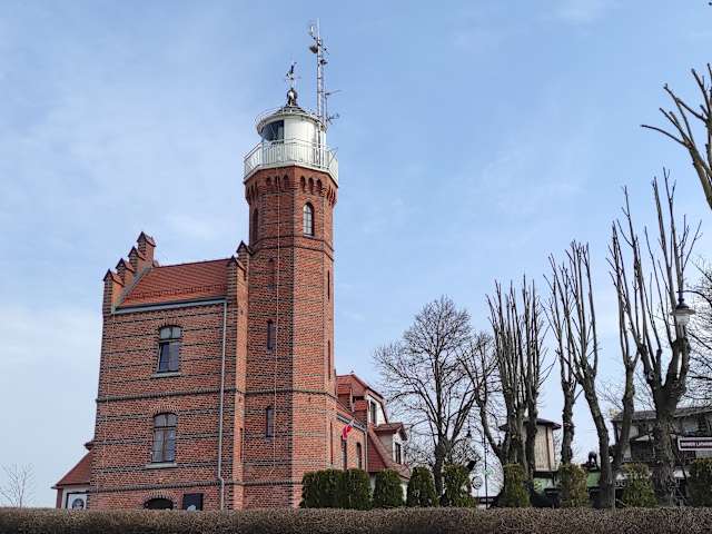 Nach Umbauarbeiten steht der Leuchtturm seit 1904 in seiner jetzigen Form an der Stolpemündung .Es ist ein attraktiver Klinkerbau.Im Inneren führen Stahl-und Betontreppen auf die Plattform.Von dieser hat man einen herrlichen Blick auf die gesamte Umgebung.