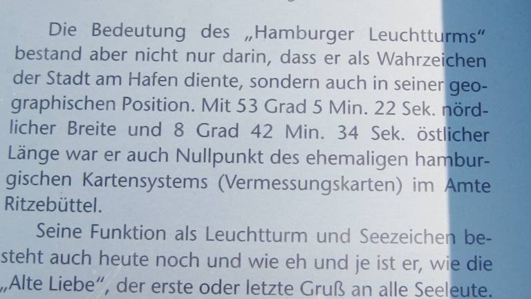 Der Leuchtturm von Cuxhaven = Hamburger Leuchtturm wurde zwischen 1802 und 1804 gebaut. Dazu gibt es über dem Eingang eine Inschrift, die laut einer Infotafel vor Ort (übersetzt) besagt: „Den Seefahrern zum Zeichen sich selbst zum Denkmal hat der Hamburgische Staat diesen Turm im Jahre 1803 errichtet.“ Eine weitere Infotafel (gezeichnet Stadtmuseum Cuxhaven) besagt: „Seine Funktion als Leuchtturm und Wahrzeichen besteht heute noch und wie eh und je ist er, wie die „Alte Liebe“ der erste und letzte Gruß an alle Seeleute.“ Ja, er ist schön der Leuchtturm, aber 2001 erlosch sein Feuer. War er zu teuer für die Stadt Cuxhaven ? Quellen besagen, dass er an privat verkauft wurde, 2022 dann den Besitzer wechselte. Heute nun kann man dort buchen - wie in einem Hotel. Zimmer, usw. sind auf der Homepage zu sehen. Der Leuchtturm steht unter Denkmalschutz und soll schon seit 1924 auf der Liste der Baudenkmäler Hamburgs stehen. Sechs Sonnen für den ehemaligen Leuchtturm. Nicht für die Umfunktionierung. Quellen: Infotafeln vor Ort / wikipedia.org / ndr.de / hamburger-leuchtturm.de