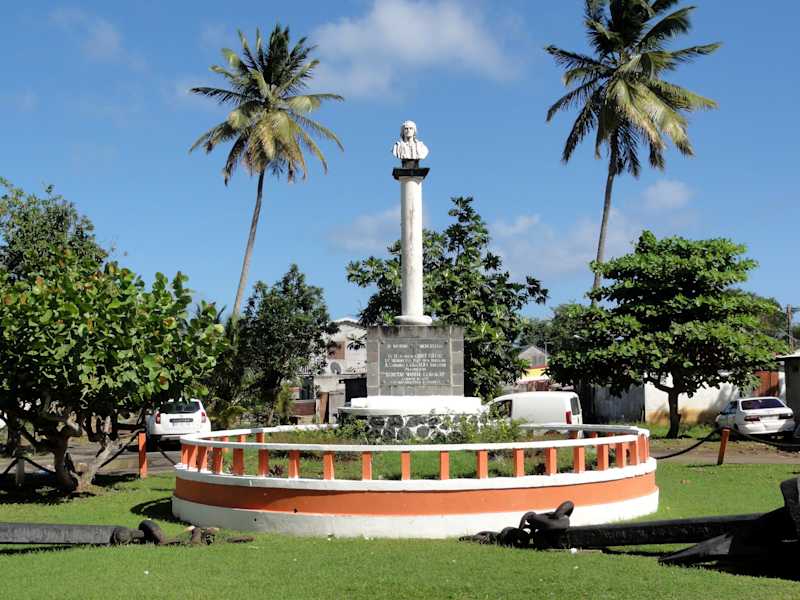 Am 4. November 1493 landete Christoph Kolumbus auch auf Guadeloupe, um sich hier mit frischem Wasser zu bevorraten. Die Landungsstelle liegt in dem kleinen Ort Sainte-Marie an der Ostküste von Basse-Terre und dem ungewollten Entdecker des amerikanischen Kontinents wurde ein kleiner Gedenkpark errichtet: Die Büste von Kolumbus steht auf einer hohen Säule direkt an der N1 auf dem Weg von Pointe-à-Pitre zur Inselhauptstadt Basse-Terre mitten im Ort und ist nicht nur ausgeschildert, sondern auch schwer zu übersehen. Wer auf historischen Spuren wandeln möchte, findet knapp 200 Meter von der Säule entfernt die eigentliche Landungsstelle, die mit einer Marmortafel an den „Caraïbe inconnu“ gedenkt: Den indianischen Ureinwohnern bescherte die Ankunft der europäischen Seefahrer nämlich in der nachfolgenden Zeit das traurige Ende ihrer Kultur und die fast vollständige Ausrottung. Die heutigen Einwohner Guadeloupes stammen nicht von den hier einstmals lebenden Kariben ab, sondern haben zum größten Teil ihre Wurzeln in Afrika, von wo sie damals als Sklaven verschleppt wurden.