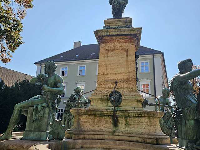 Der Brunnen stammt aus dem 18. Jahrhundert. Der Grundriss symbolisiert ein vierblättriges Kleeblatt. Auf dem Sockel steht die Beschützerin der Stadt - Lindavia - mit einem Lindenzweig in der Hand. Die Figuren am Becken stellen den Wein- und Ackerbau, die Fischerei und die Schifffahrt dar.