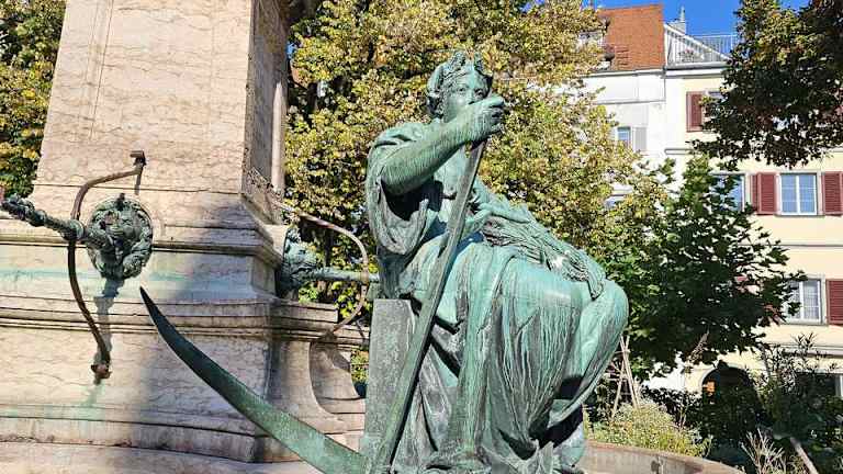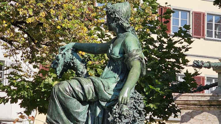 Auf dem Reichsplatz in Lindau kann der Lindavia_Brunnen seit 1884 bewundert werden. Der Brunnen wurde aus hellrotem Marmor gefertigt und die Figuren auf dem Brunnen symbolisieren das Handwerk.