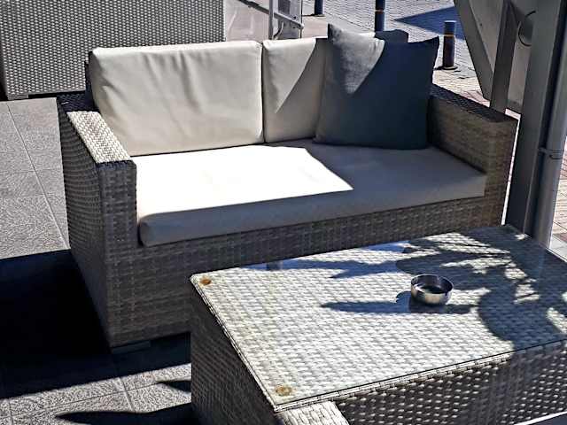 Das Lobby Café befindet sich in Bestlage, im Zentrum, direkt gegenüber vom Kloster. Man kann sowohl drinnen als auch draußen oder im Wintergarten sitzen. Es ist eines von wenigen Lokalitäten in denen auch im Innenbereich geraucht werden darf. Im Außenbereich gibt es fast ausschließlich nur Sonnenplätze und gerade in der Vorsaison kann man das richtig schön genießen. Eigentlich wollten wir nur einen Kaffee trinken gehen, allerdings haben wir gesehen, dass der Kaffeepreis im Verglich zu den Cocktailpreisen fast schon unverschämt ist. Also warum nicht direkt einen Cocktail oder ein Cider bestellen. Der Service ist sehr freundlich und hilfsbereit und hat tatsächlich für uns auch mit der Konkurrenz gechattet, um die Öffnungszeiten zu erfragen, weil wir dort mehrmals vor geschlossener Tür standen. Es gibt zwar auch eine kleine Speisekarte, aber hauptsächlich liegt der Fokus auf andere Dinge und auch wir würden hier eher nur etwas trinken, statt etwas zu essen. Kryou Nerou, 1