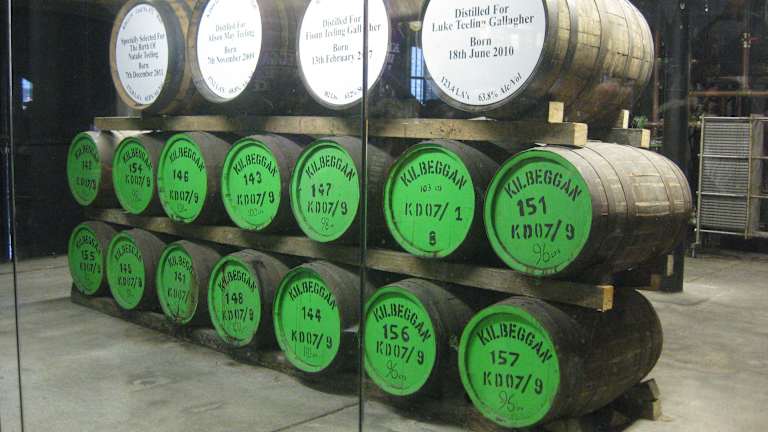 Auf unserer Irlandrundreise haben wir auch in den 3 Destillen in Irland Halt gemacht. In der Kilbeggan Destillery hatten wir eine Gold Medal Tour von Zuhause aus gebucht, schon da versuchten die freundlichen Mitarbeiter uns eine deutsche Tour anbieten zu können. Hat leider nicht geklappt, wir waren dort nur zu sechst. Der Preis war 25€ pro Person, im Preis inbegriffen war das Tasting mit 4 Sorten Irischen Whiskeys, ein kleines Nosingglas gab es oberdrauf. Unser Guide war Pascal, ein Franzose der beim Museum arbeitete. Trotz seines französischen Akzents im englisch war er für uns wunderbar zu Verstehen. Er führte uns über das ganze Gelände der in Betrieb befindlichen Destillery, ins Fasslager, zu den Brennblasen, den Maischebottichen und zu den alten Museumsteilen. Alles in allem sehr Sehenswert. Zur Zeit bietet die Destillery sogar für 75 € an bei der Faßabfüllung dabei zu sein, aber lieber bei Interesse nachfragen, die Antworten sofort.