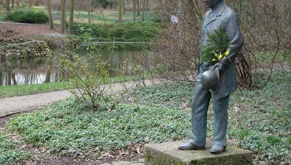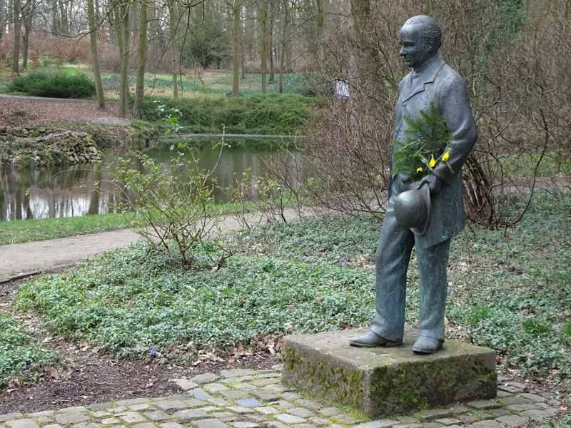 In einem hügeligen Parkareal über dem Ufer der Lesum trifft man beim Rundgang auf die Bronzestatue eines förmlich gekleideten Herrn, der freundlich seine Besucher mustert. Es handelt sich um das Denkmal für den Bremer Großkaufmann Ludwig Knoop, welcher hier vor langer Zeit in seinem Schloss „Mühlenthal“ lebte. Knoop, der 1821 in Bremen geboren wurde, erwarb profunde Kenntnisse in der maschinellen Baumwollverarbeitung in England, gründete Firmen und expandierte mit seinem Geschäft nach Russland, wo er zu einem der wohlhabendsten Unternehmer wurde – weit über hundert Betriebe, aber auch Banken und Versicherungen gehörten damals zu seinem Imperium und man verlieh ihm sogar den Adelstitel Baron. Trotz internationaler Umtriebe blieb die Geburtsstadt für Ludwig Knoop immer „Heimathafen“ und den Park rund um sein Anwesen ließ er vom berühmten Landschaftsgärtner Wilhelm Benque gestalten, der zuvor auch den Bremer Bürgerpark angelegt hatte. Ludwig Knoop starb 1894 im Alter von 73 Jahren und wurde auf dem Waller Friedhof beigesetzt. Noch heute wacht der Kaufmann über seinen ehemaligen Park, der inzwischen der Öffentlichkeit zugänglich ist und von vielen Wegen durchzogen wird. Das bezaubernde Denkmal wurde vom Bremer Künstler Claus Homfeld 1994 anlässlich des 100. Todestages von Baron Knoop geschaffen und zeigt den erfolgreichen Kaufmann in Lebensgröße bei einem Spaziergang. Mit Blumen an seinem Denkmal zeigen die Bremer, wie sehr sie Ludwig Knoop immer noch schätzen.
