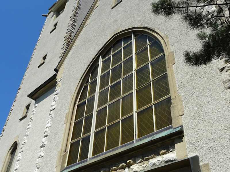 Mit dem Flyer " Stadtrundgang Singen" ging es zur Lutherkirche. Laut Flyer sind die Malereien in der Kirche von Seltenheitswert im westlichen Bodenseeraum und man kann den Schlüssel zur Kirche im Büro der evangelischen Luthergemeinde ausleihen - bei unserem Besuch in Singen war dieses leider geschlossen. Ein Abstecher sollte entsprechend geplant werden.