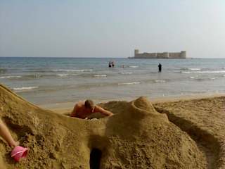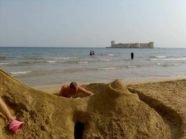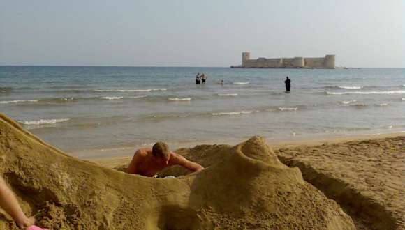 Über den feinsandigen Strand ins Warme Wasser und als Ziel die Mädchenburg-da macht das Schwimmen Spaß. Und bei Nacht ist die Burg wunderschön beleuchtet