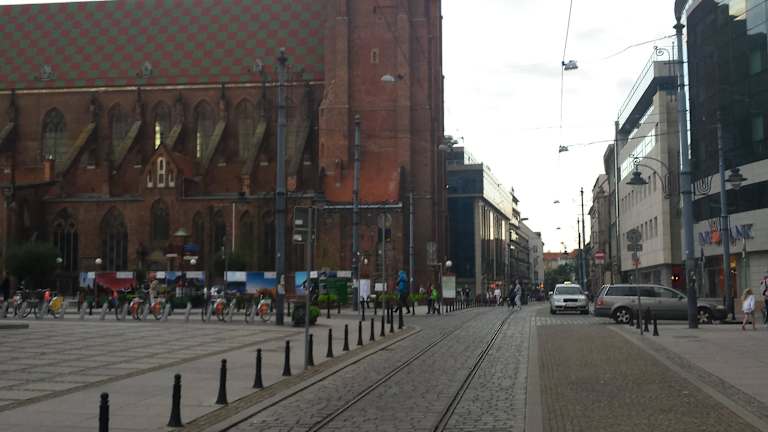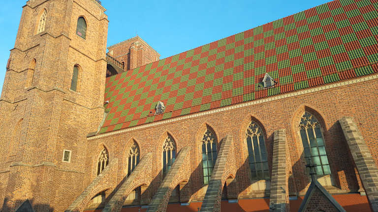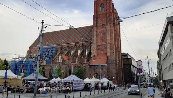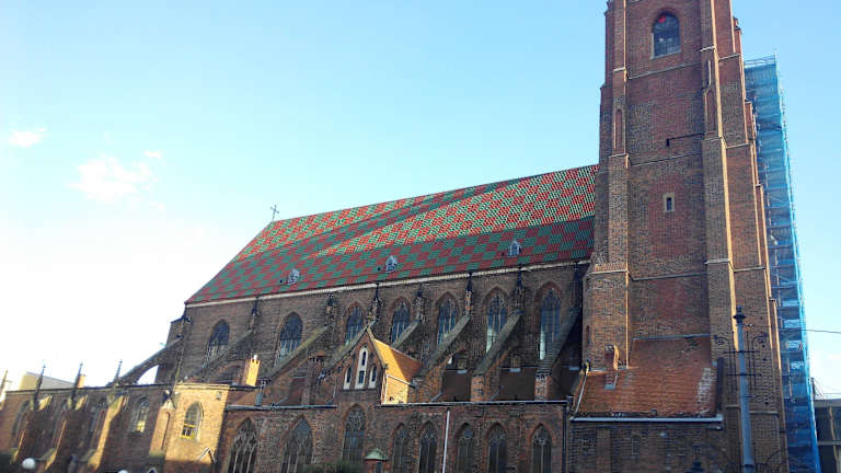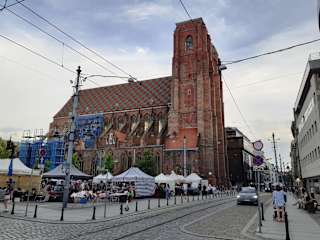 Sie fällt sofort auf die Maria-Magdalena Kirche mit ihrer Büßerinnenbrücke. Dort sollen nachts die Seelen der Büßerinnen herumgeistern. Die Brücke ist die ideale Aussichtsplattform, sie verbindet in 47 m Höhe die beiden Kirchtürme und man hat einen schönen Blick über die Altstadt. Der spätgotische Backsteinbau war die Kirche der Zünfte und Bürger. Sie ist eine der beiden ältesten Pfarrkirchen, aus dem 13 Jahrhundert, von Breslau.