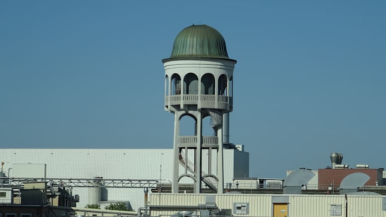 Der historische Wasserturm der Firma Maggi liegt auf der anderen Seite der Bahngleise. Am Ende der Fußgängerzone findet man ein Fernrohr, mit welchem der Blick auf ein am historischen Wasserturm befindliches Kunstwerk "Männliche Figur" von Stephan Balkenhol gelenkt werden soll.