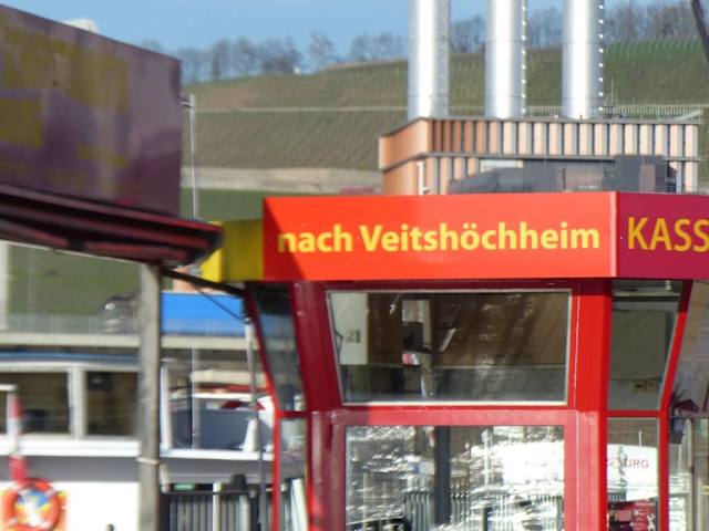 Direkt nach dem „Alten Kranen“ am rechten Mainufer ist die Bootsanlegestelle der Veitshöchheimer Personenschifffahrt. Das Angebot ist vielfältig und reicht von der normalen Linienfahrt von Würzburg nach Veitshöchheim und wieder zurück im April bis Oktober bis hin zu Silvester- und Neujahrsfahrten, Gruppenfahrten, organisierte Familienfeste, Schleusenfahrten und Sonderfahrten mit Brunch, Mittagsmenüs, verschiedene fränkische Menüs, Kaffee und Kuchen, Weinproben und Brotzeitplatten. Also ist für jeden etwas dabei. Wer Zeit hat, sollte sich dieses entschleunigende Vergnügen nicht nehmen lassen.