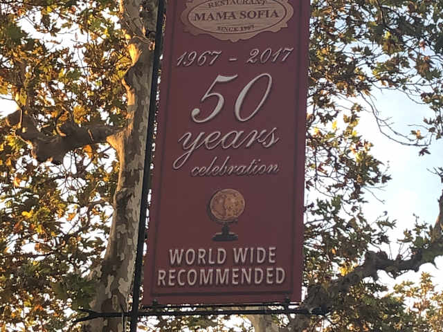 Wir wollten auch einmal auf einer Dachterrasse sitzen und so entschieden wir uns relativ spontan für’s Mama Sofia, nicht zuletzt auch deswegen, weil man hier nicht ganz so eindringlich durch Schlepper zum Besuch eingeladen wurde. Man erklimmt über steile Stiegen die Dachterrasse und sitzt bei herrlicher Aussicht auf den Uhrturm und das Treiben in der Orfeusstrasse. Die Tische sind ansprechend gedeckt, der Service ist überaus freundlich und bleibt es, auch wenn man wie wir, nur eine Kleinigkeit zum Mittag zu sich nehmen will. Das Preisniveau ist allerdings, wie meistens in der Altstadt, wenn man in vorderster Reihe einkehrt, etwas gehobener. Wir zahlten für Tsaziki, Mousaka, Knoblauchbrot (inkl. 3 Dips) und 2 Getränken immerhin 25Euro. Erst später las ich, dass dieses Restaurant auch im Merian Reiseführer als Tipp erwähnt wird. Lagebeschreibung: Eingang Altststadt über Amboise-Tor, vorbei an den Porträtmalern unter den Platanen zur "Odos Orfeos 28", gegenüber Uhrturm (Roloi) s.a.: http://www.mamasofia.gr Ausstattung: mit Terrasse / Garten / mit Bar